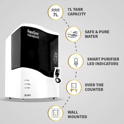 Original price was: ₹11,199.00.₹7,839.00Current price is: ₹7,839.00.Eureka Forbes AquaSure from Aquaguard Delight (RO+UV+MTDS) 7L water purifier